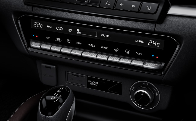 Hệ thống điều hòa tự động hai vùng độc lập hiện đại với dãy nút bấm mạ chrome