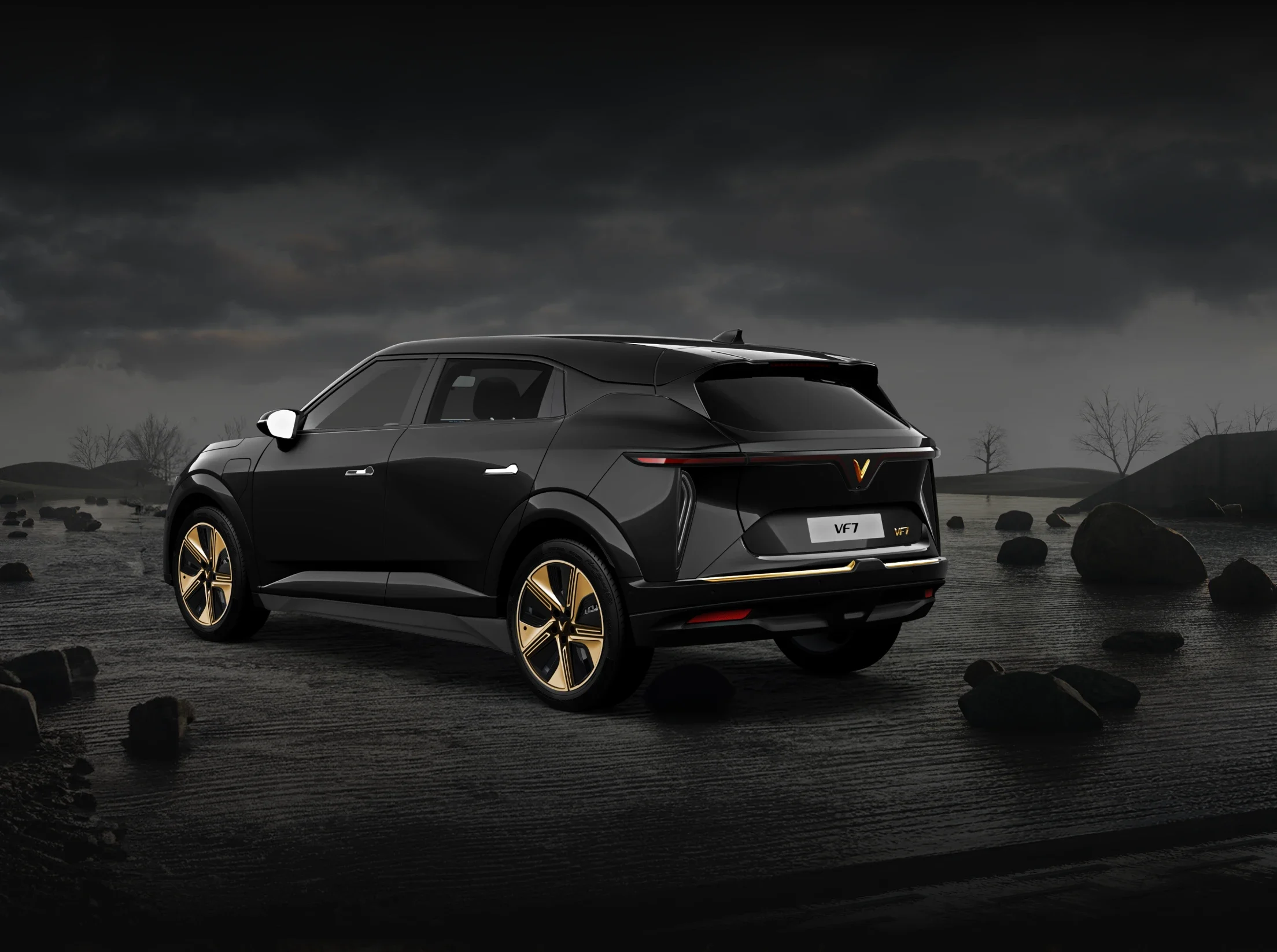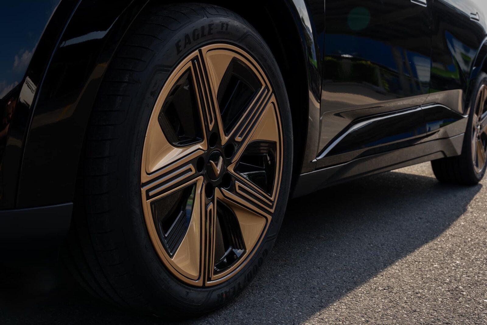 Đầu và đuôi xe được định vị nổi bật bởi dải đèn LED hình cánh chim đặc trưng của VinFast. Mui xe vuốt xuôi về phía sau kiểu coupe, cùng hốc bánh xe lớn, la-zăng hợp kim lên tới 20 inch, góp phần tạo nên vẻ đẹp mạnh mẽ và thể thao.