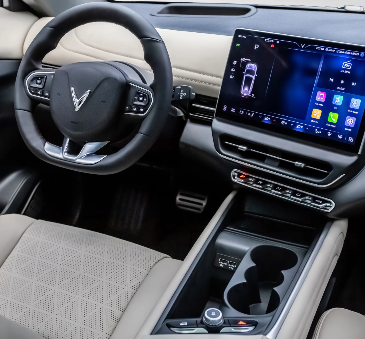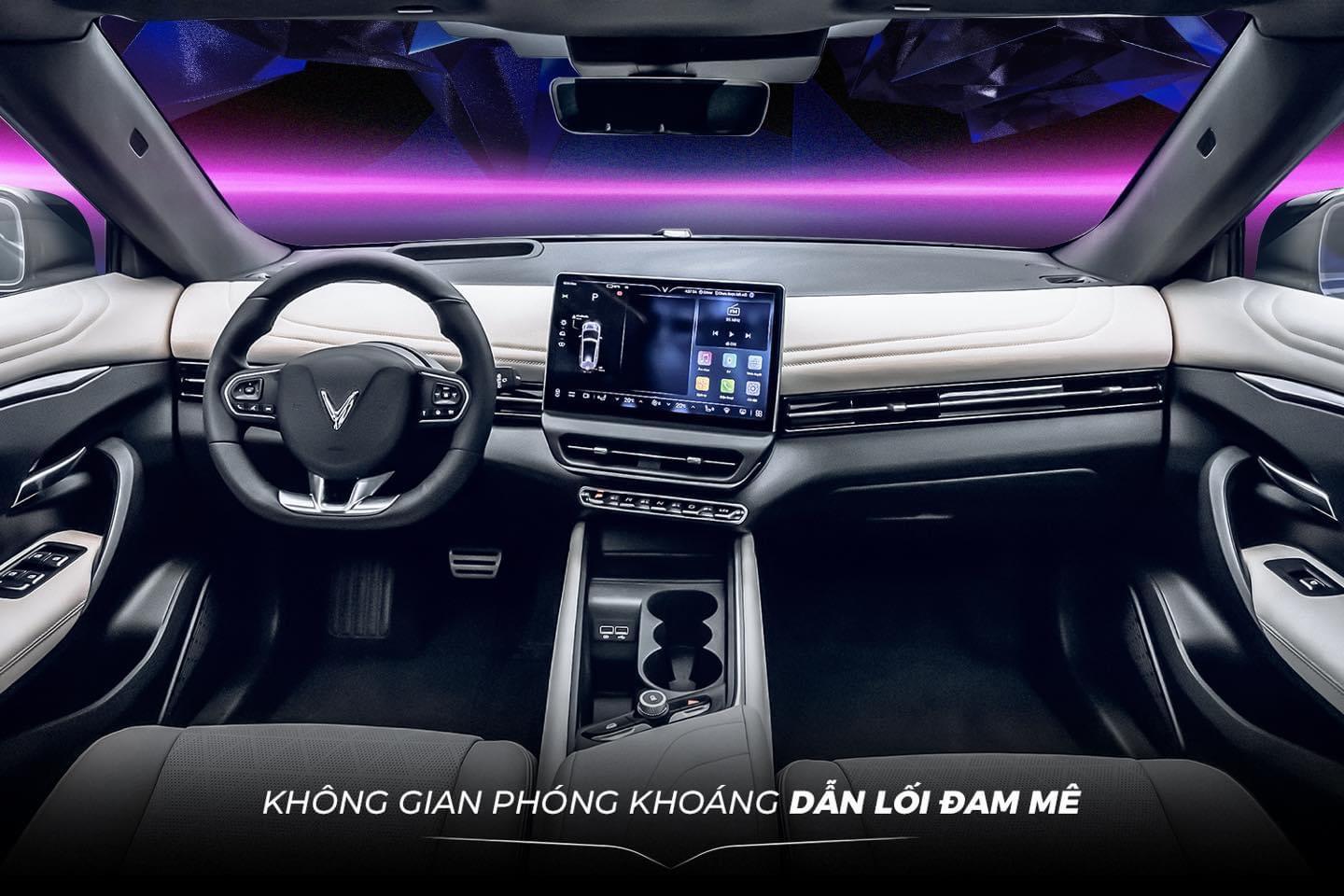 Với chiều dài 4.545mm (chiều dài cơ sở 2.840 mm), rộng 1.890mm, cao 1.635,75mm và khoảng sáng gầm xe 190 mm, VF 7 sở hữu không gian nội thất khoáng đạt, rộng rãi với dàn ghế được bọc da cao cấp.