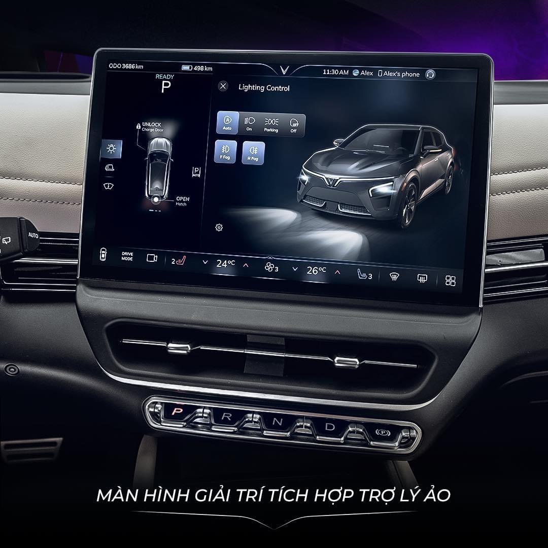 Với kích cỡ 12,9 inch, có thể tùy chỉnh cá nhân hóa theo người dùng. Màn hình giải trí cảm ứng của VF 7 có thể giúp điều khiển các chức năng trên xe bằng cách vuốt/chạm nhẹ hoặc ra lệnh cho trợ lý ảo qua giọng nói.